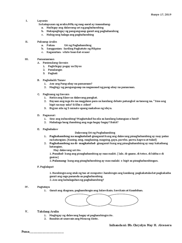 Ang PAGHAHAMBING o KOMPARATIBO ay ginagamit kung naghahambing ng dalawang antas o lebel 3. There are generally two ways that sentences are structured in the Filipino language. Sitwasyon Aralin I 2 mo Sa araling ito maipamamalas mo ang kakayahan at pagkamatatas sa pagsasalita at pagpapahayag ng sariling ideya kaisipan karanasan at damdamin.