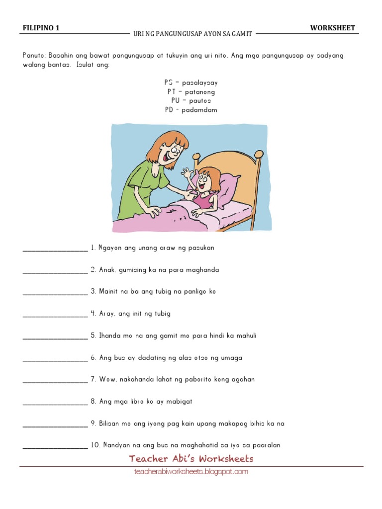 Flag for inappropriate content. Displaying all worksheets related to - Uri Ng Pangungusap Ayon Sa Gamit Grade 4. Si Peter ay tumatakbo papunta sa kanilang bahay.
