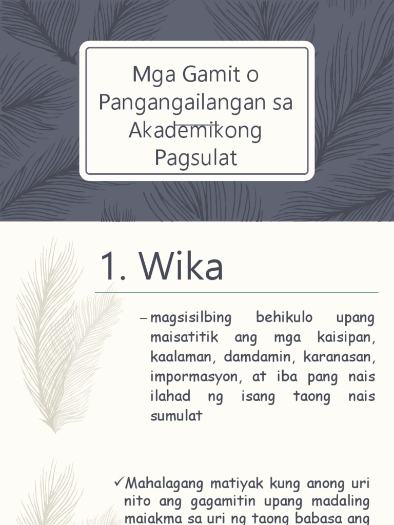 Gamit o pangangailangan ng akademikong pagsulat. Ang pagsulat ay lundayan ng. Flag for inappropriate content. Magsisilbing behikulo upang maisatitik ang mga kaisipan kaalaman at iba pang nais ilahad.
