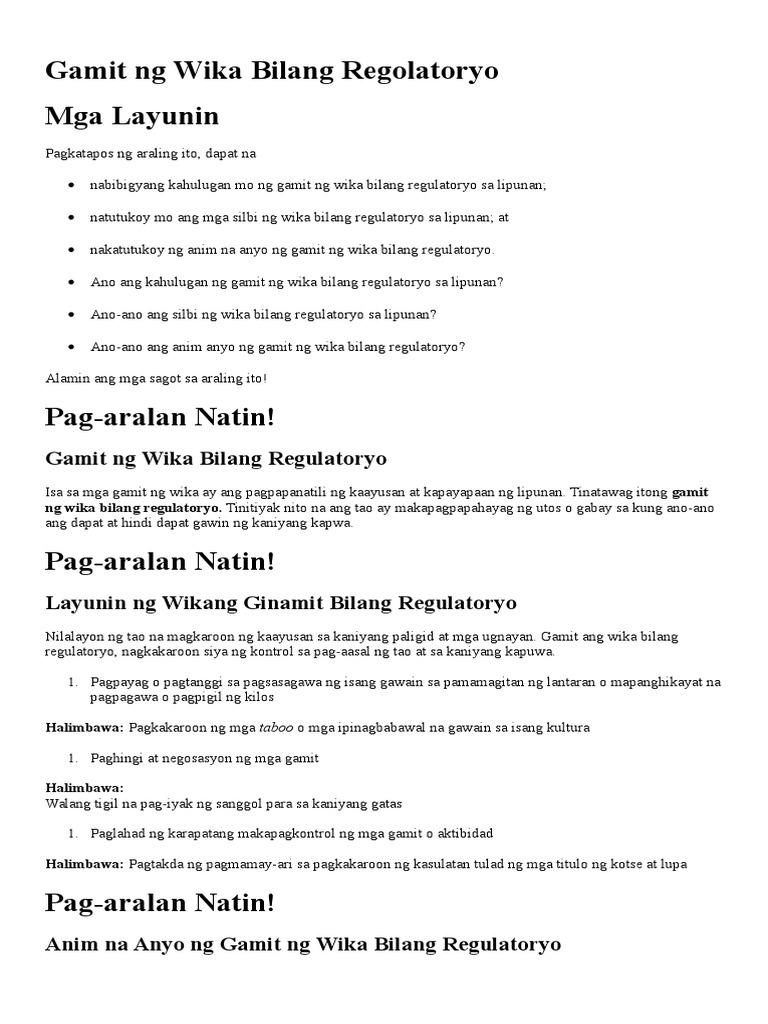 Gamit Ng Wika Bilang Regolatoryo Pdf